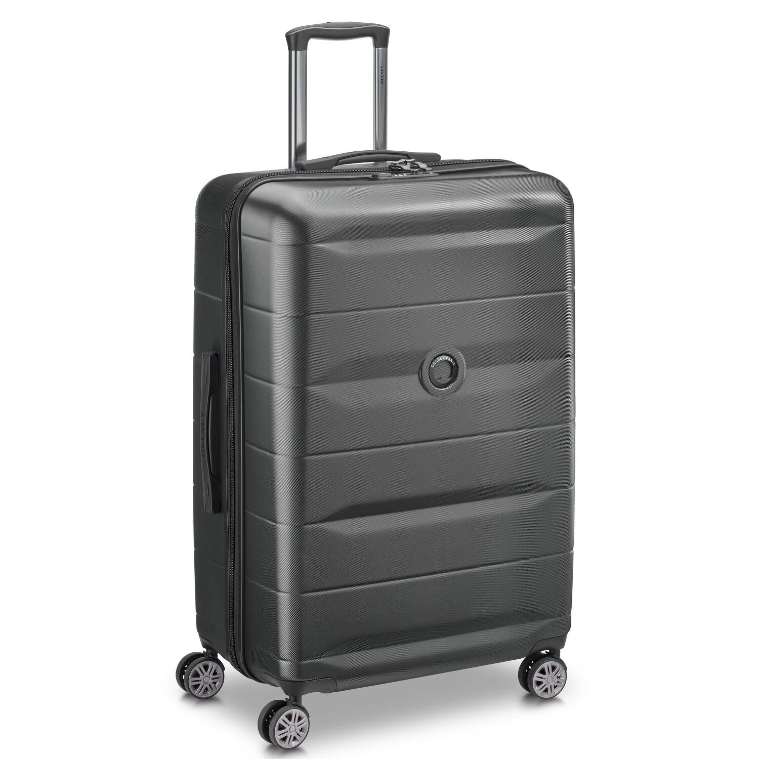 Robuster Hartschalen-Trolley von Delsy mit TSA-Schloss und hochwertiger Innenausstattung. Der Trolley überzeugt nicht nur durch sein elegantes Design, sondern auch durch seine hohe Verarbeitungsqualität, Stabilität und Funktionalität. Vier leicht zu manövrierende und geräuscharme Doppelrollen wurden speziell für einen sehr hohen Rollkomfort entwickelt. Ein idealer Begleiter für Reisen jeglicher Art.